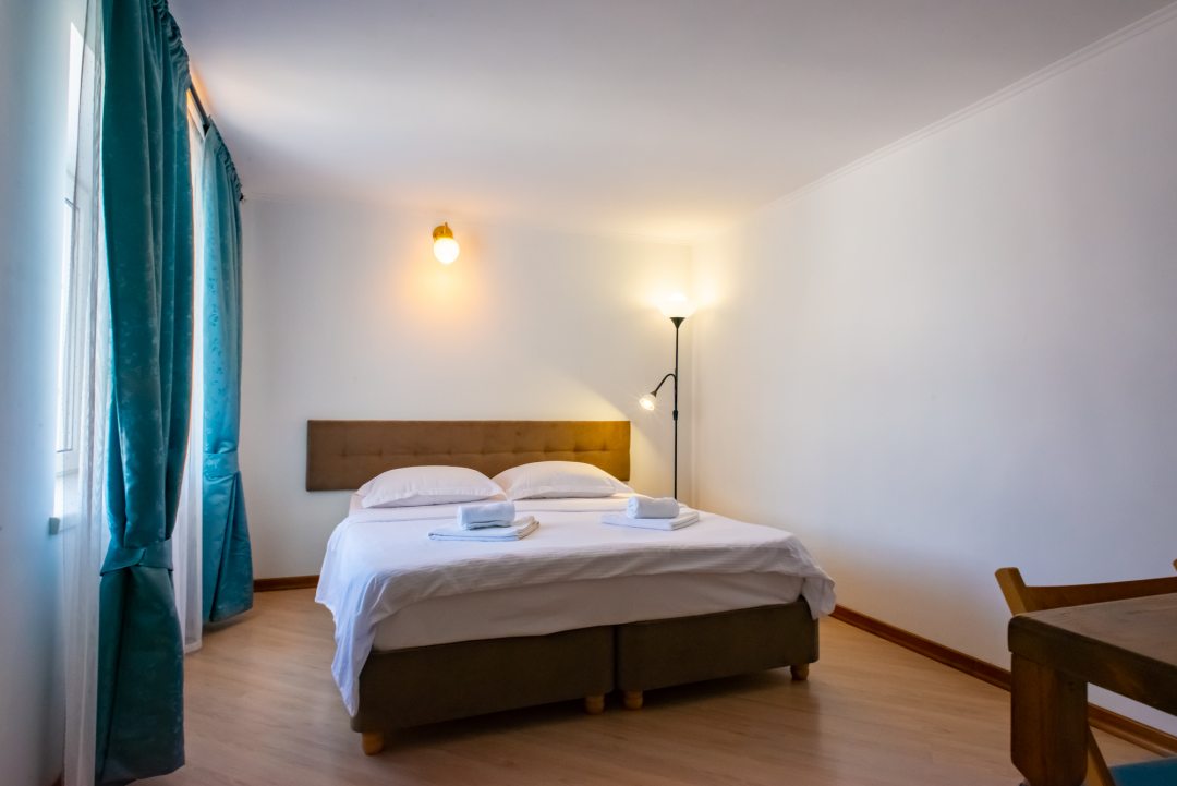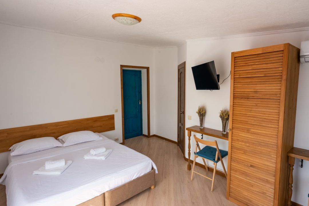 Площадь номера - 18 кв.м. 2 осн. места. Мебель: вешалка, зеркало, кровать двуспальная/ две полутороспальные кровати, прикроватные тумбочки, стулья, тумба, шкаф. Оборудование: кондиционер, телевизор. Санузел: с душем, туалетные принадлежности, фен. Сервис: Wi-Fi бесплатно, смена полотенец, смена постельного белья, уборка номера.